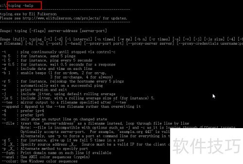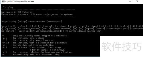 8、 输入tcping回车或执行tcping --help,可查看更多参数用法。