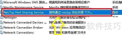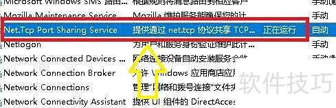 4、 在服务管理界面中,查找并定位名为Net.Tcp端口共享服务的项目。