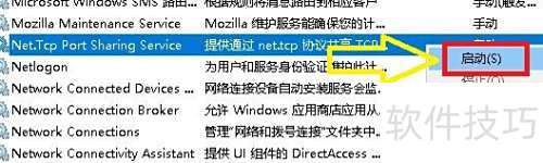 5、 右键点击Net.Tcp端口共享服务,选择启动该服务。