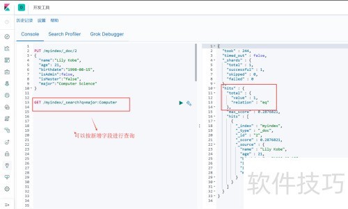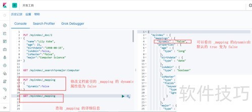 13、 所示,将索引映射中的 dynamic 属性设为 false 后,新增包含新字段的文档仍可成功写入,但后续使用该新字段进行查询时,无法检索到对应文档数据。