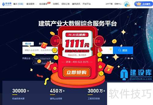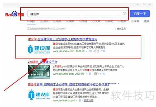 1、 百度搜索建设库,进入建筑行业大数据查询平台。