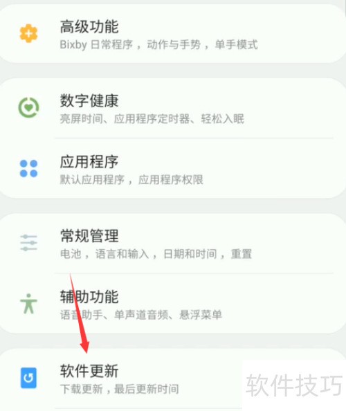 2、 进入设置后,点击软件更新选项进行下一步操作。