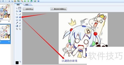 7、 进入第一张图片的编辑模式,选用文字工具,输入江湖的小虾米:,并调整字体大小与颜色等样式参数。