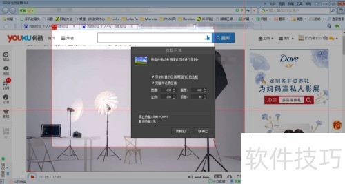 5、 区域录制指用户可自定义录制范围,通过调整左右高低的像素值来确定录制区域。