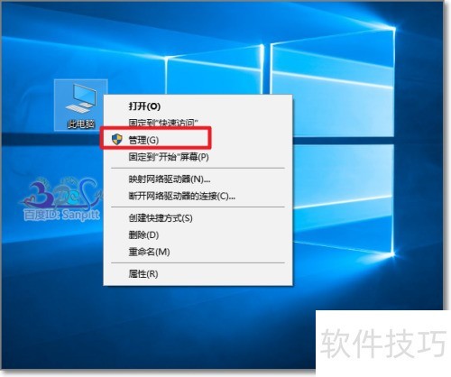 1、 右键点击此电脑,选择管理,进入计算机管理界面。