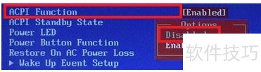 7、 进入电源管理设置,找到ACPI功能选项,将其更改为禁用状态即可完成配置。