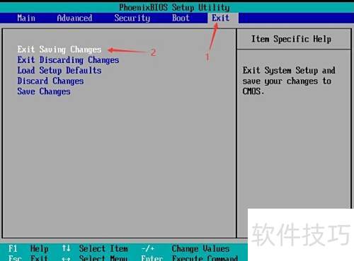 5、 完成ACPI设置后,进入Exit菜单,选择Exit Saving Changes保存更改并退出。