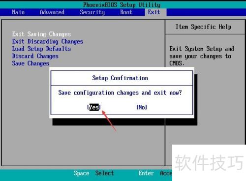 6、 当BIOS出现Setup Confirmation提示框时(也可按F0快捷键),选择是以保存设置并退出,系统将自动重启,此时ACPI功能已成功启用。