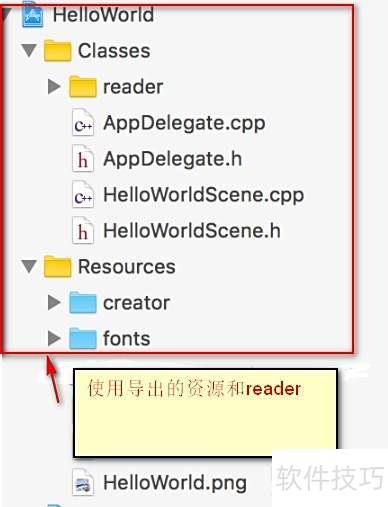 3、 在cocos2d-x项目中导入资源并使用reader进行操作的实现步骤如下