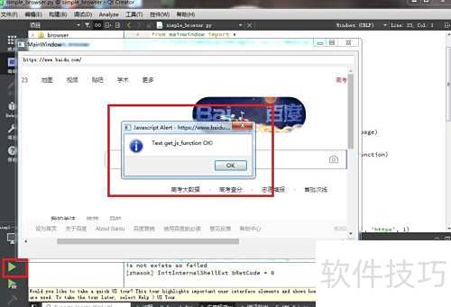 6、 六、点击运行按钮,若程序正常执行并弹出对话框,说明在Qt Creator中使用Qt for Python成功调用了JavaScript(js),具体效果所示。
