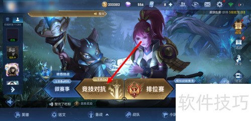 7、 进入王者荣耀主界面,选择竞技对抗模式。