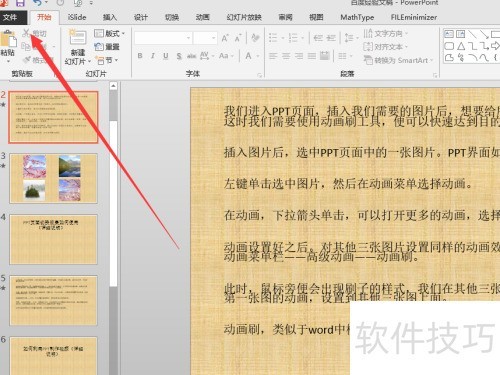 1、 启动PPT软件,编辑完成幻灯片内容后,介绍讲义打印的具体操作步骤。