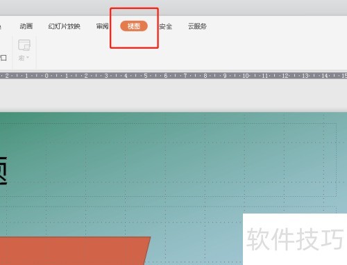 2、 打开PPT后,选择顶部菜单中的视图选项。