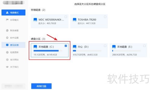 2、 选择需恢复数据的分区,确认后点击开始扫描即可。