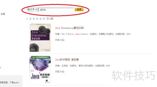 4、 安装后在搜索栏输入想看的书籍名称,如Java,点击查询即可。