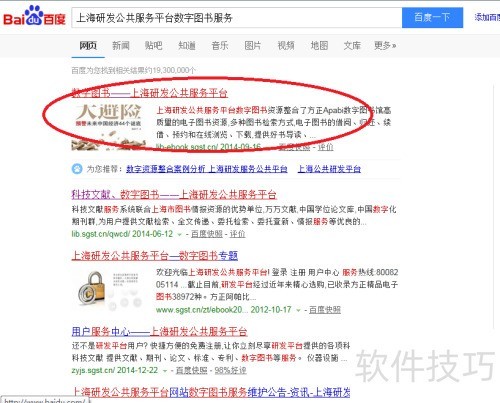 1、 搜索上海研发公共服务平台数字图书服务并点击进入即可。