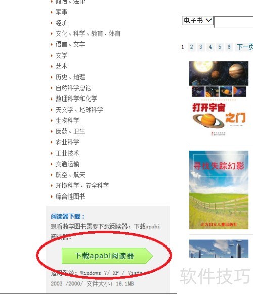 3、 在网页左下角获取Apabi阅读器并安装至个人电脑。