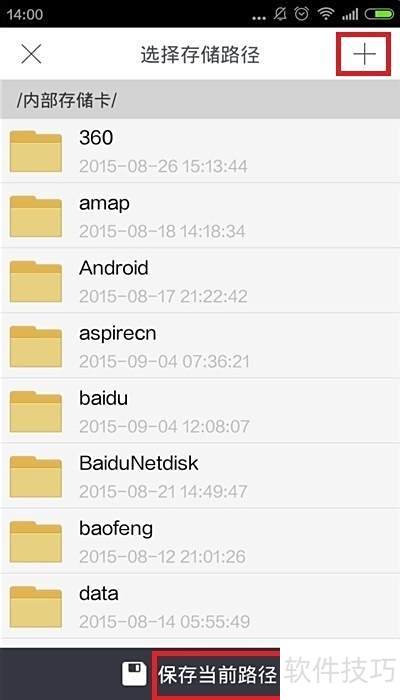 5、 在存储路径选择中,可自行指定迅雷下载的保存目录,选定后点击下方保存当前路径即可生效,也可通过右上角+号创建新文件夹作为下载目录。