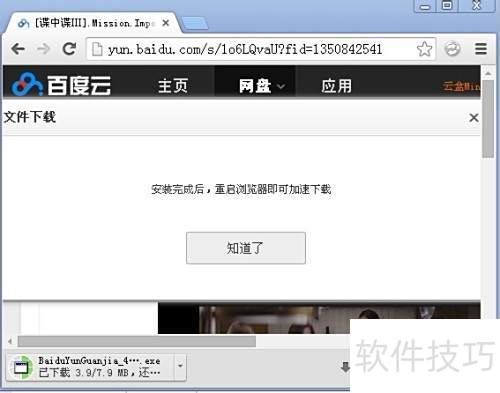 5、 需先根据提示下载安装百度云管家,之后才可下载所需电影。