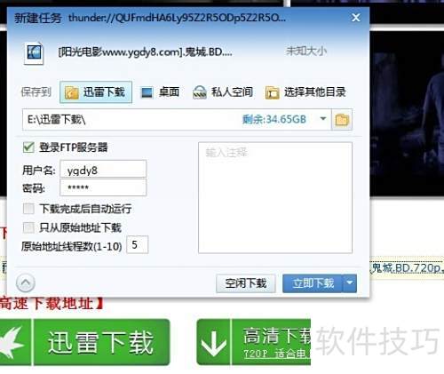 5、 发现此类FTP资源时,可打开迅雷,选择新建任务进行下载。