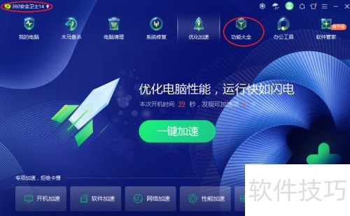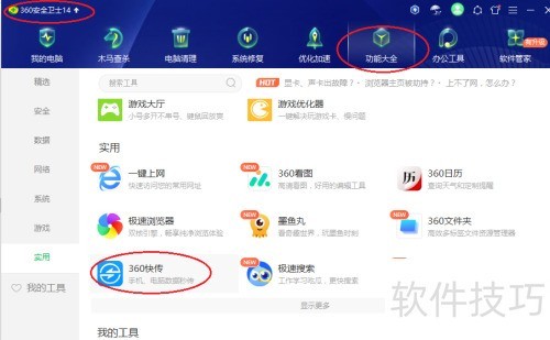 1、 打开360安全卫士,进入功能大全。
