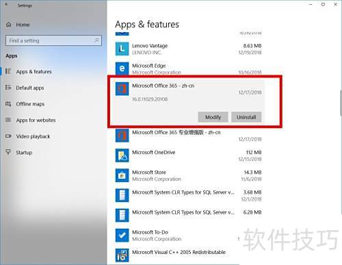4、 在应用程序列表中,定位并选择 Microsoft Office 365。