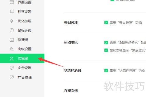 5、 进入实验室界面,选择并开启360画报功能选项。