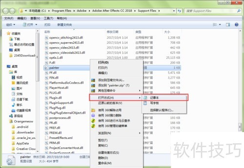 4、 此时,在弹出的窗口中找到Painter文件,右键点击,选择打开方式,然后用记事本打开。