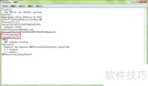 5、 在记事本中,于@AdobeID下方添加指定内容。