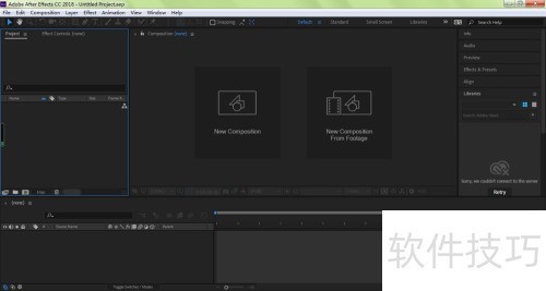 8、 重新启动AE软件后,界面语言已切换为英文,所示。