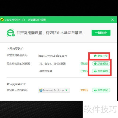 6、 进入主页后点击下方锁定按钮,即可将当前页面设为浏览器的默认主页。