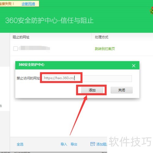 3、 点击需屏蔽的网站,再选择添加至屏蔽列表。