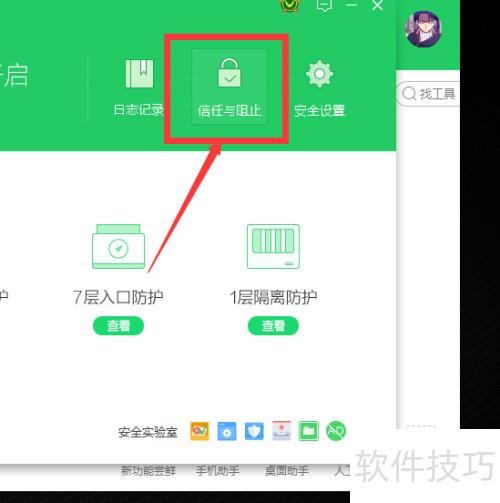 2、 进入防护中心,选择信任与阻止功能。