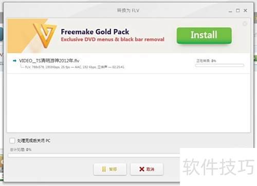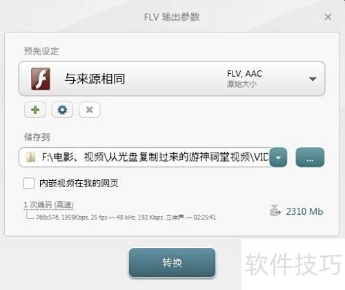 3、 可根据需求选择转换格式,实测FLV与MKV在相同参数下文件大小相近。但转换为FLV时CPU占用较低,而转为MKV则资源消耗较大,通常超过90%,建议根据设备性能合理选择。