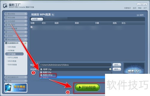 4、 从下拉菜单中选择高清1080p,然后点击开始转换按钮即可。