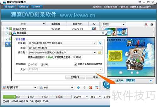 海贼王是由东映动画制作的一部少年热血冒险类动画,改编自日本漫画家尾田荣一郎创作的同名漫画作品。故事围绕主角蒙奇·D·路飞展开,他从小立志成为海贼王,为追寻传说中的宝藏One Piece,踏上充满挑战与奇迹的航海旅程。作品融合友情、梦想、战斗与成长,情节跌宕起伏,人物刻画鲜明,深受广大观众喜爱,被许多人视为当代最杰出的漫画之一。相较于死神火影忍者等同类作品,海贼王在剧情深度与情感表达上更显出色。为了方便在传统设备上观看,许多人会将下载的MP4格式海贼王视频内容刻录成DVD光盘。通过使用狸窝DVD刻录软件,用户可轻松完成格式转换与光盘制作,最终在家用DVD播放机上流畅播放,享受大屏幕观影体验。以下是具体的操作步骤说明。