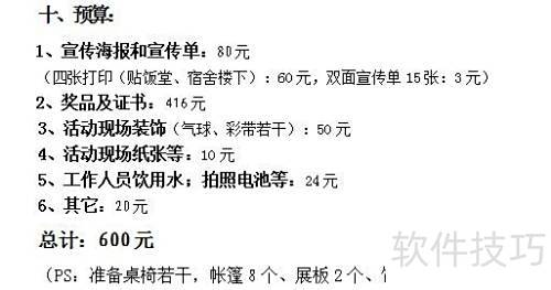 23、 预算为策划书不可或缺的内容,应条理清晰地列出,建议采用表格形式呈现,便于阅读者快速掌握信息,字体、字号及格式要求与前述保持一致。