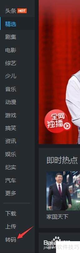 1、 打开优酷,点击左下角菜单中的转码选项。