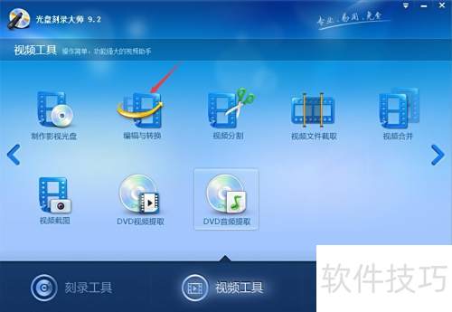 5、 启动光盘刻录大师,进入视频工具,选择编辑与转换功能。