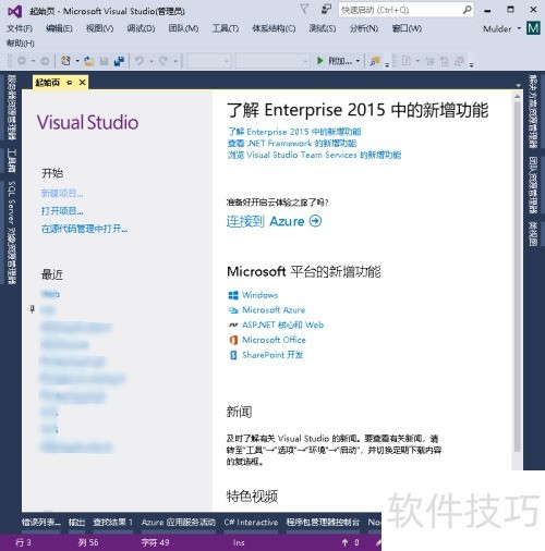 4、 启动VS2015进入主界面