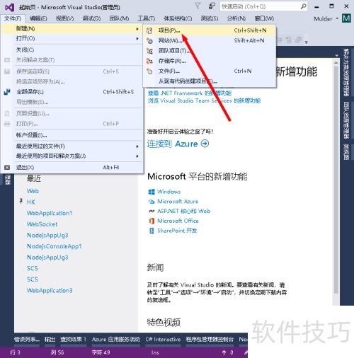 7、 依次点击文件、新建、项目选项