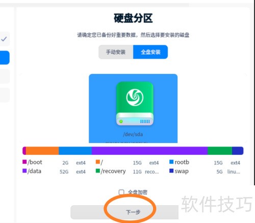 13、 选择待安装的磁盘,由于在虚拟机中操作,磁盘已预先配置完毕。
