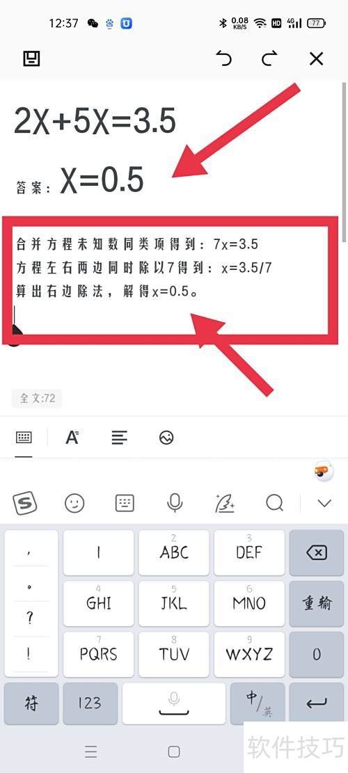 本文分享解方程2x+5x=3.5的方法。先合并同类项得7x=3.5,再将两边同除以7,得x=3.5÷7,计算得x=0.5。整个过程简洁明了,便于理解与掌握。