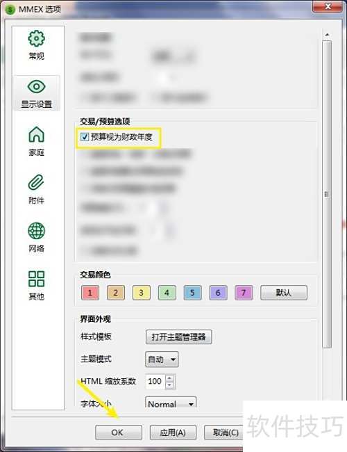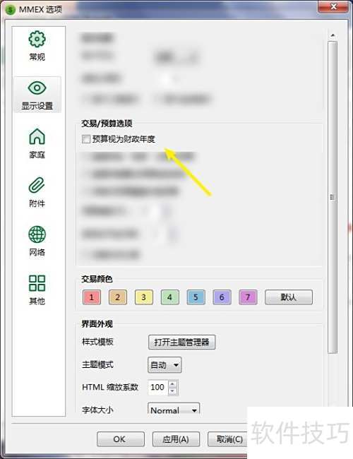2、 在选项页面,设置预算视为财政年度的勾选状态。