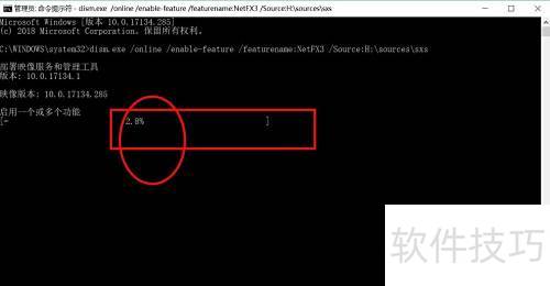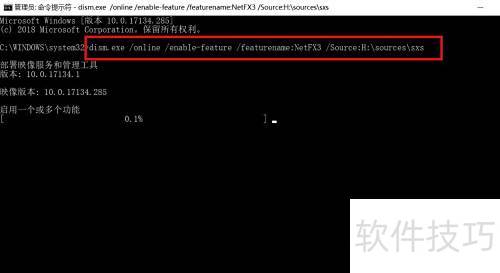 3、 将命令 dism.exe /online /enable-feature /featurename:NetFX3 /Source:H:sourcessxs 复制后执行,其中 H: 表示虚拟光驱的盘符,请根据实际路径修改后按回车键运行即可完成操作。