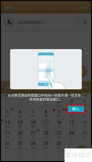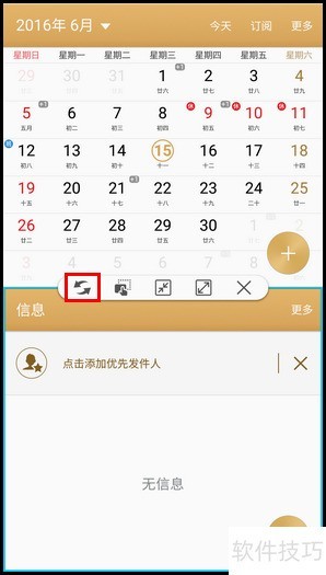 6、 信息和S日历窗口位置已调整,点击图标即可操作。(部分应用可能不支持该功能。)