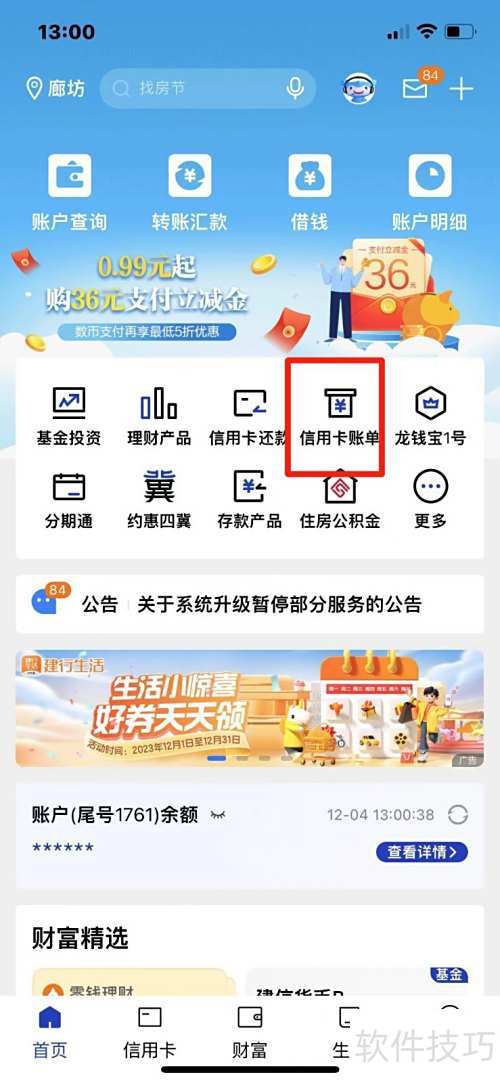1、 打开中国建设银行App,进入信用卡账单页面。