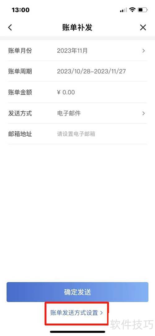 3、 进入账单补发页面后,点击账单发送方式设置选项。
