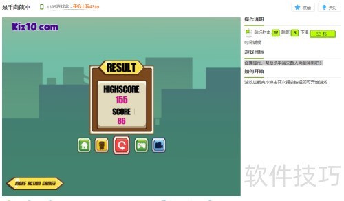 2、 按W键跳跃,S键下滑,配合鼠标操作,时间随之减缓。