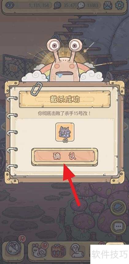 5、 成功截杀后即可消灭杀手15号改,点击确认领取奖励。